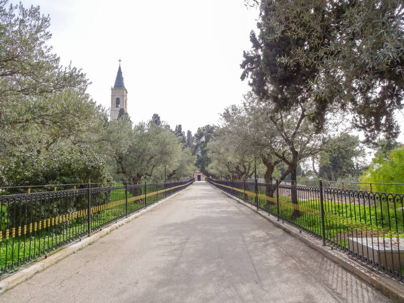 Naast de toren bevindt zich de Hemelvaartskerk. Deze is gebouwd op één van de plekken waarvan men denkt dat Jezus hier ten hemel is gevaren. De kerk is zeshoekig en heeft in het midden een koepel in het dak. Als je omhoog kijkt in de kerk, zie je in de koepel een afbeelding waarop Jezus naar de hemel opstijgt. Bij een van de buitenmuren van de kerk is een rots te zien achter een blauw hek. Volgens de traditie stond Maria op deze rots toen haar zoon Jezus naar de hemel ging. Aan de buitenkant van de kerk is een groter deel van de rots te zien.