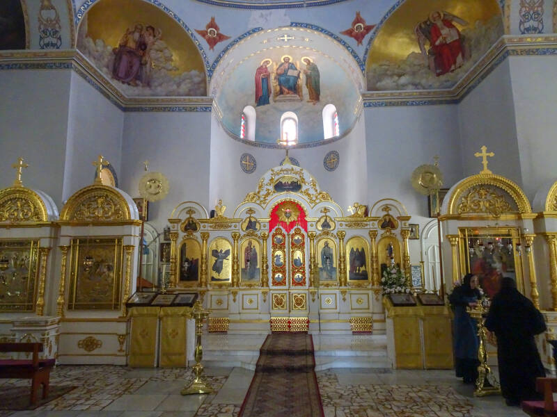 Pater Parthenius wilde hier een kloostergemeenschap oprichten. Hij begon diensten te houden en langzaamaan kwamen er meer vrome vrouwen bij die zich wilden aansluiten. Binnen een jaar was er een zustergemeenschap van 100 leden. In 1906 werd de kloostergemeenschap officieel erkend. Om inkomsten te genereren begonnen de zusters met het schilderen van iconen en met borduurwerk. Pater Parthenius werd helaas doodgestoken in 1909, hij ligt hier begraven in de kerk. De dader is nooit gevonden.