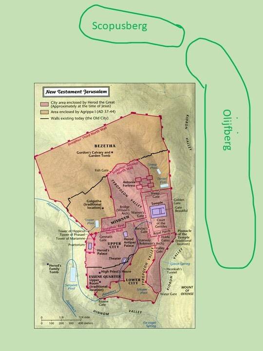 Plattegrond van Jeruzalem in Jezus' tijd.